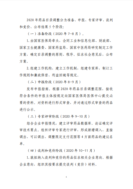 2020年8月3日-10日,國家醫(yī)療保障局就《2020年國家醫(yī)保藥品目錄調(diào)整工作方案(征求意見稿)》向社會公開征求了意見。8月17日,《2020年國家醫(yī)保藥品目錄調(diào)整工作方案》和《2020年國家醫(yī)保藥品目錄調(diào)整申報指南》正式公布。